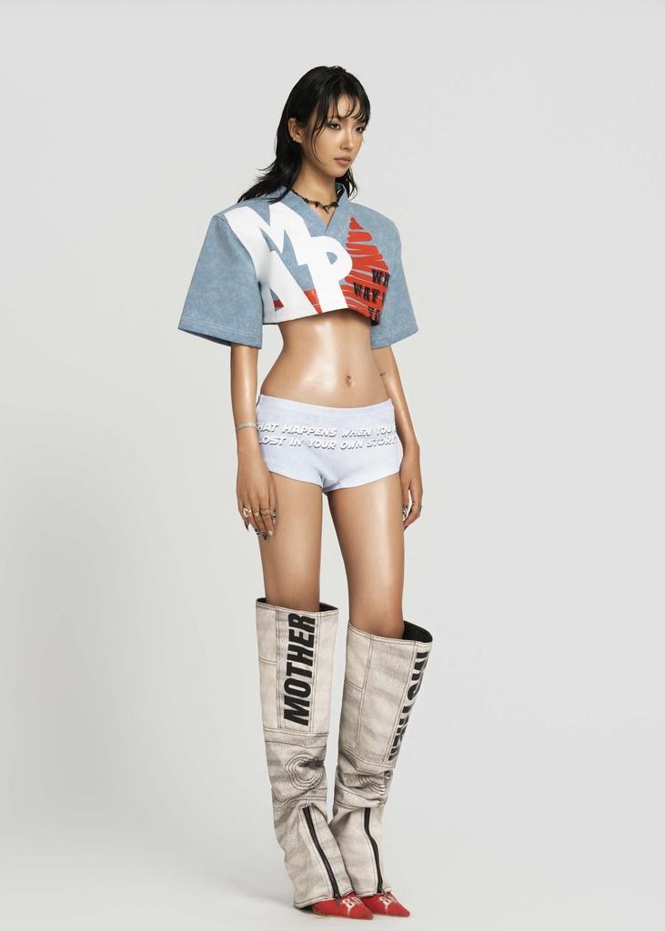 Detail: Short cropped silhouette hitting just below the bust, wide shoulders with padded structure for upper-body volume, puffed mid-length sleeves, printed lettering and graphics on the front