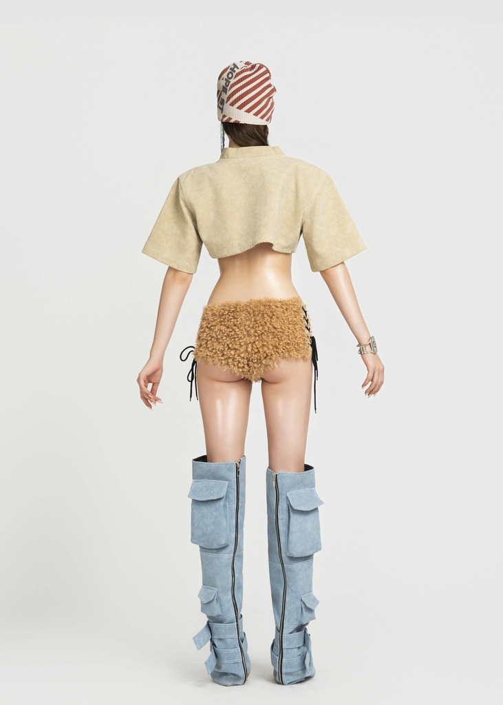 Detail: Quilted faux-leather fabric, four cargo pockets on both sides, lace-up detail at ankle, printed logo on the front. (shoes not included)