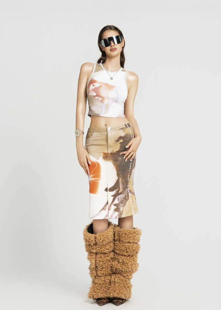 MAP PRINTED MIDI SKIRT